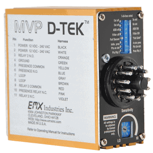 The MVP D-TEK multi-voltage vehicle detector makes it simple to manage your stock. All you need is one detector in your stock room and on your truck. This multi-voltage vehicle detector solves the problem of not knowing which voltage to take for service a call or installation. Reduce the cost of inventory by stocking only one loop detector – with the universal voltage of our MVP D-TEK.