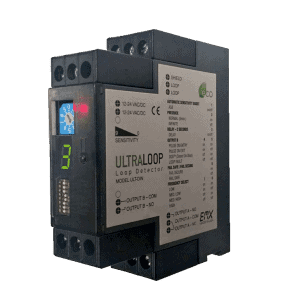The ULTRA-DIN vehicle loop detector combines small size with full-featured functionality in a DIN rail mount module.