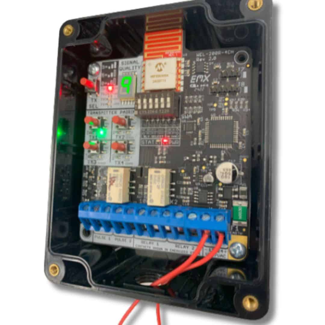- Multiple Transmitter Support: Connects with up to four transmitters, providing separate relay and pulse outputs for open and close edge functionality.